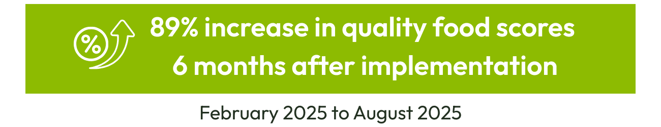 Continuous, steady growth of quality metrics reflect that the new dishes and presentation are resonating with patients and driving meaningful improvement in satisfaction.