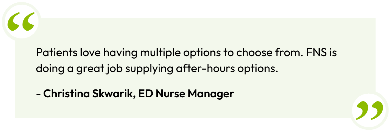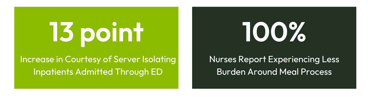 The growth of high-acuity emergent visits creates a more complex ED patient mix, leading to longer lengths of stay, heightened demand for specialist care and surgical services, and increased inpatient admissions. The ED Impact Project initiative meets these patients and our clinical caregivers where they are, with quality and accessible food options that help promote healing in a fast paced environment.